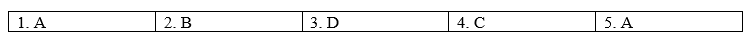 (Bạn sẽ nghe thấy năm đoạn hội thoại ngắn. Bạn sẽ nghe mỗi cuộc trò chuyện hai lần. Có một câu hỏi cho mỗi cuộc trò chuyện. Với mỗi câu hỏi, hãy chọn câu trả lời đúng (A, B hoặc C).