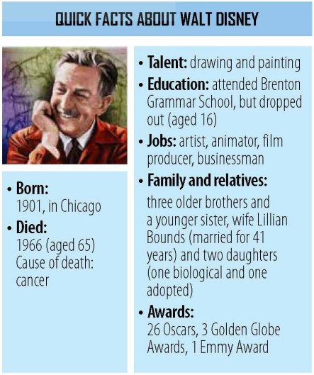 2. Read some facts about Walt Disney. Then work in pairs to answer all the questions in 1.