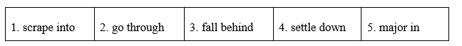 (Nối các động từ ở khung A với các giới từ ở khung B để tạo thành cụm động từ, sau đó hoàn thành câu với các cụm động từ đó.)