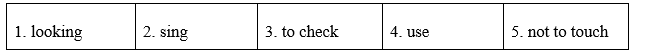 5. We were warned, __________ (not / touch) any of the exhibits.