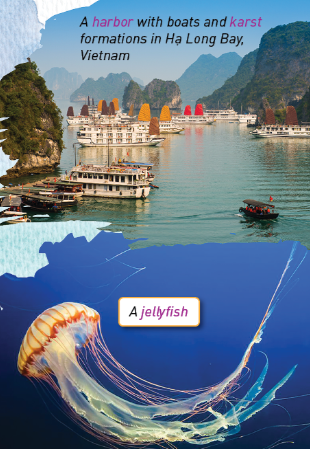 (Nhìn vào những bức tranh. Bạn có muốn thực hiện một chuyến đi qua đêm trên một chiếc thuyền? Bạn có thể nhìn thấy và làm những điều gì?)