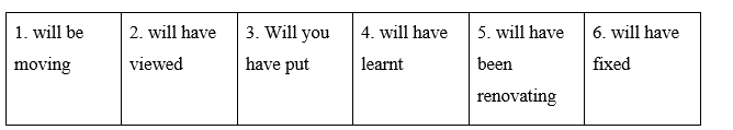 (Hoàn thành các câu với dạng Tương lai tiếp diễn, Tương lai hoàn thành đơn hoặc Tương lai hoàn thành tiếp diễn của động từ trong ngoặc.)