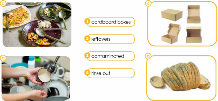 (Đọc một số đoạn trích từ email gửi đến tạp chí Teen. Nối các từ và cụm từ được đánh dấu (1-4) với các hình ảnh (a-d).)