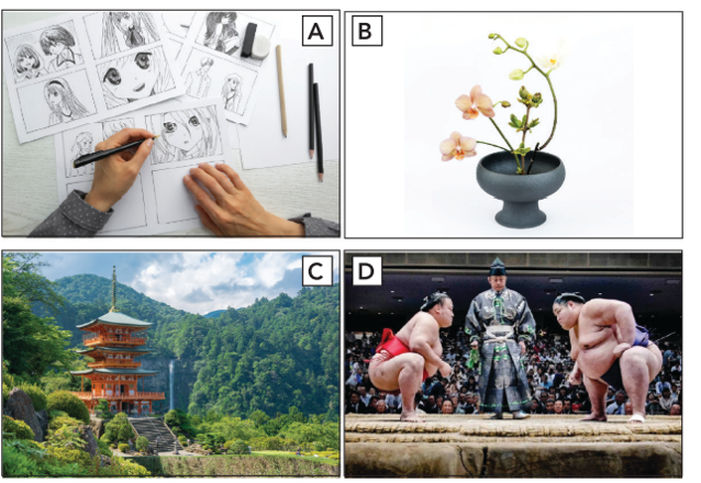 1. Look at the photos (A-D). What do you know about these aspects of Japanese culture?