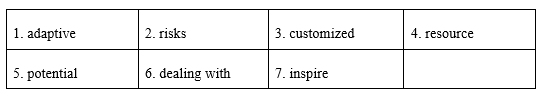The advantages of (1) adaptive computer technology far outweigh the (2) risks. First, online learning programs can be (3) customized to meet individual student's needs. The online programs can be a terrific (4) resource when teachers or tutors are unavailable. The (5) potential it possesses in (6) dealing with every students will (7) inspire and teachers alike.