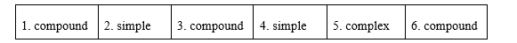 (Đọc các câu, sau đó khoanh tròn đơn, ghép hoặc phức để cho biết chúng thuộc loại câu nào.)