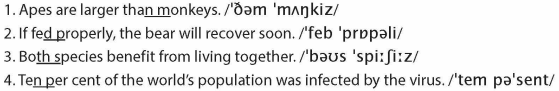 1. Listen and repeat the examples above. Pay attention to the highlighted sounds.