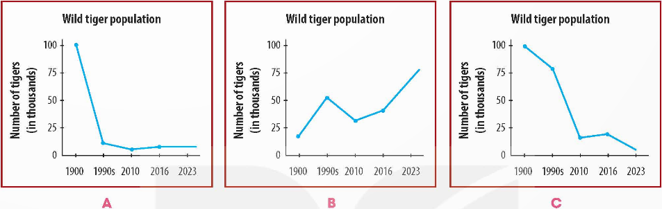 (Đồ thị nào thể hiện số lượng hổ trong 100 năm qua?)