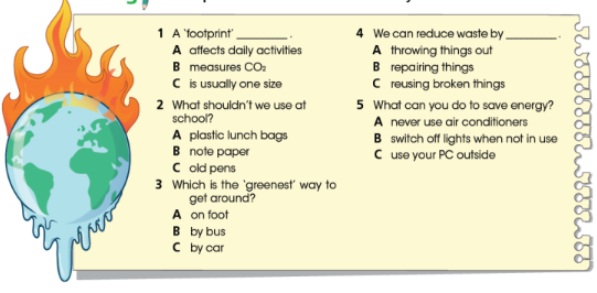 5. How big is your carbon footprint? Do you follow any of the tips in the text? Discuss with your partner.