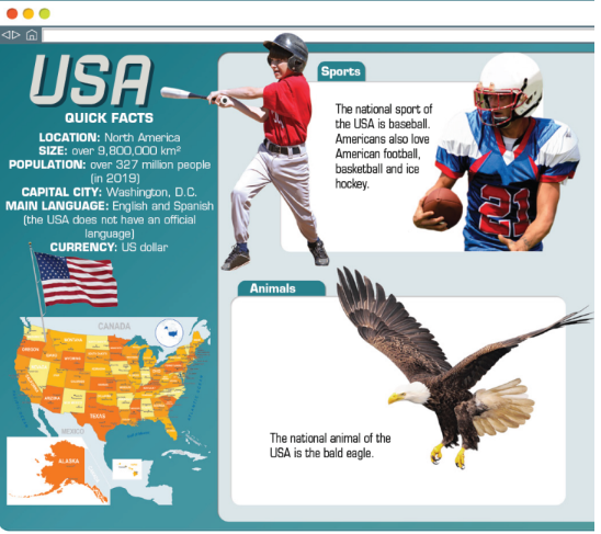 3. Do some Internet research and find out information about natural landmarks in the USA. Prepare a poster. Present it to the class.