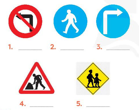 (Viết các cụm từ trong ô dưới biển báo phù hợp.)