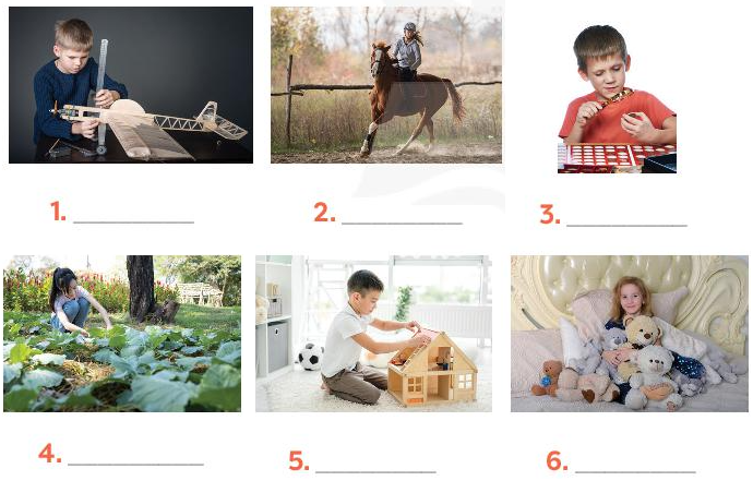 - gardening (làm vườn) - horse riding (cưỡi ngựa) |