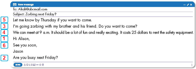 Now, write an invitation email to ask a friend to join you for an activity. Use the Feedback form to help you. Write 60 to 80 words.