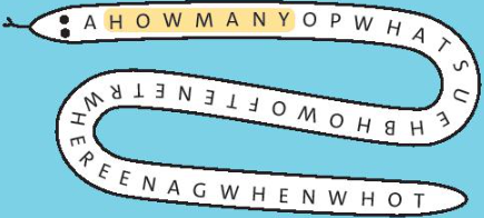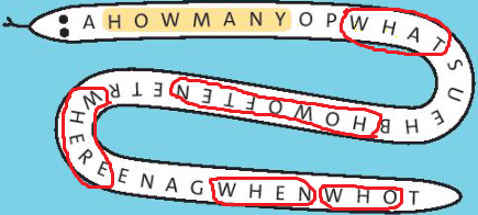 5. WORDSNAKE. Work in pairs. Find the question words and complete the questions. Ask and answer the questions.