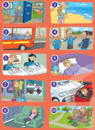 1. FIND THE PREPOSITION. Work in groups. Look at the pictures and say where the person is. Use at, in and on. Find the four pictures that use the same preposition.