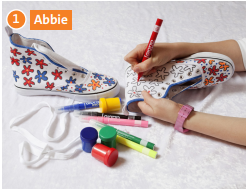 1. Abbie paints trainers.