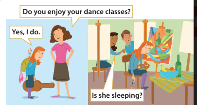 B: I sometimes go camping with my family but most of the time I paint. It’s my favourite activity to do at the weekend.