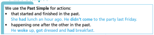 She had lunch an hour ago. He didn’t come to the party last Friday.
