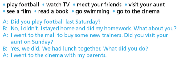 7. Ask and answer questions to find out what your partner did last weekend. Use the phrases in the list and your own ideas.
