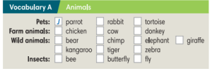 Student A: Choose an animal from Vocabulary A (Học sinh A: Chọn một con vật từ Từ vựng A)