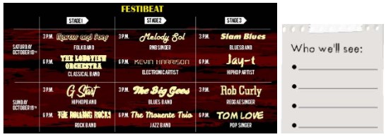b. Which bands or singers will you see at Festibeat? Share with the class.