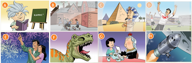 5. Listen to Jade’s time travel diary. Put pictures A–H in the correct order.