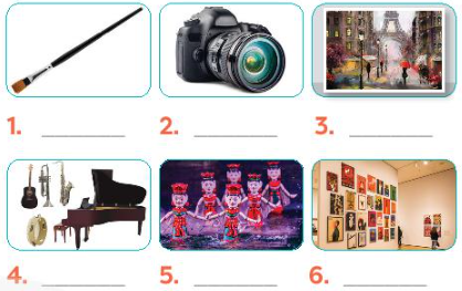 1. Listen and read. 2. What are Trang and Nick talking about? 3. Complete each of the sentences with a suitable word or phrase from the box. 4. Write the correct word or phrase under each picture. Then listen and repeat. Quiz 5. How artistic are you? Take the quiz to find out.