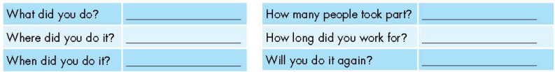 Now, write an email to a friend describing your experience of an environmental clean-up. Use the Feedback form to help you. Write 60 to 80 words.