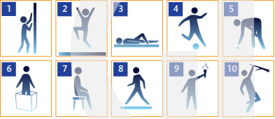 climb up hang from hold jump up kick lie on sit on stand in pick up walk on |