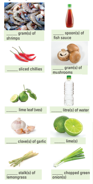 (Nghe và viết số lượng của từng thành phần mà bạn nghe được.)