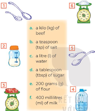1 - b: a teaspoon (tsp) of salt: 1 muỗng cà phê muối