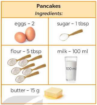 A: What do we need to make pancakes? (Chúng ta cần những gì để làm bánh kếp?)