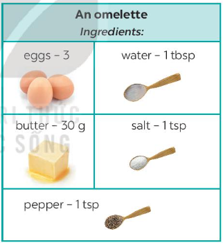 Nga: We need eggs, water, butter, salt and pepper. ![]()