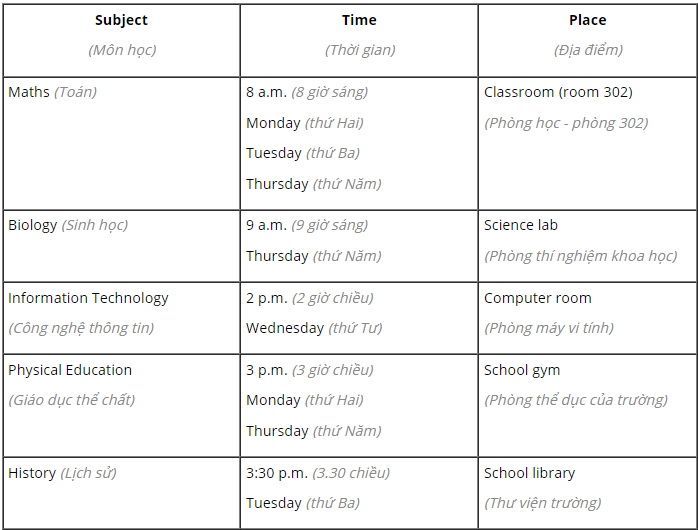 Phong: Nghe hay quá! Tớ nghĩ đó là một trong những trường tốt nhất ở đây. Ai sẽ đi với cậu và khi nào?