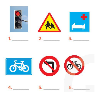 1. Label each sign. 2. Fill in each gap with one word to complete the sentences. 3. Write complete sentences, using these cues. 4. Choose A, B, or C to complete the sentences.