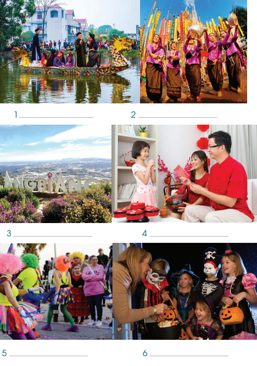 (Ghép tranh với tên của các lễ hội trên thế giới. Viết tên trên các bức tranh.)