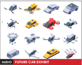 Matt and Vince are at a technology show. They are looking at a future car exhibit.