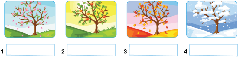 (Viết đúng các mùa dưới mỗi bức tranh.)