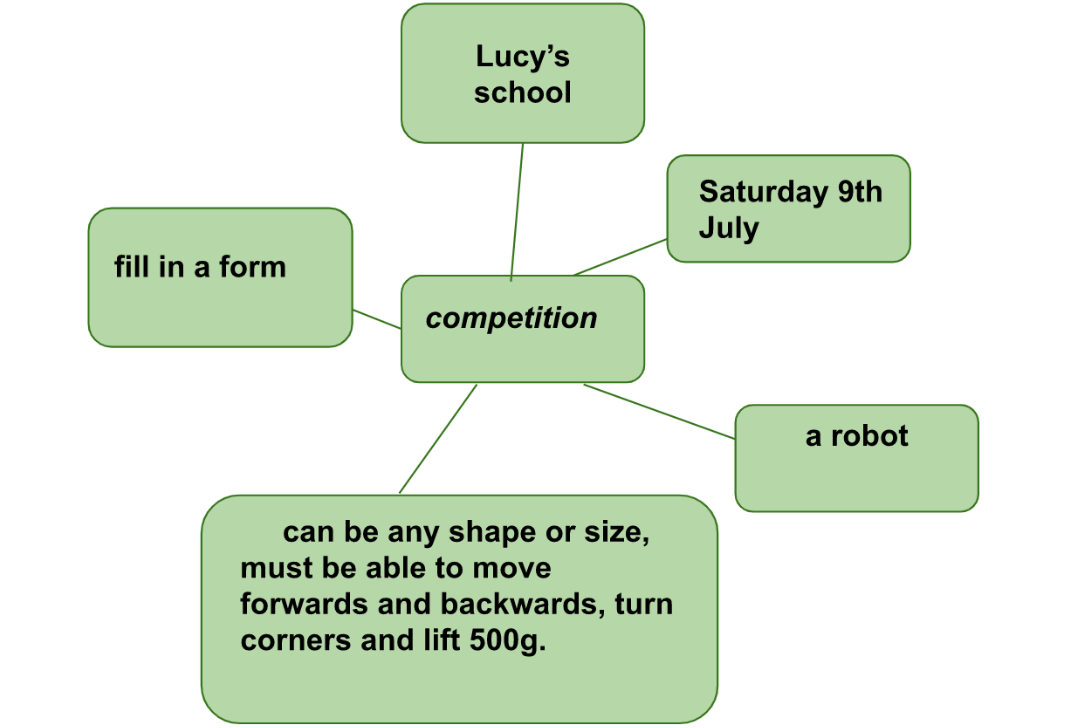 4. Brainstorming: Copy the spidergram from Exercise 2 into your notebook. Complete it with information about a science competition at your school.