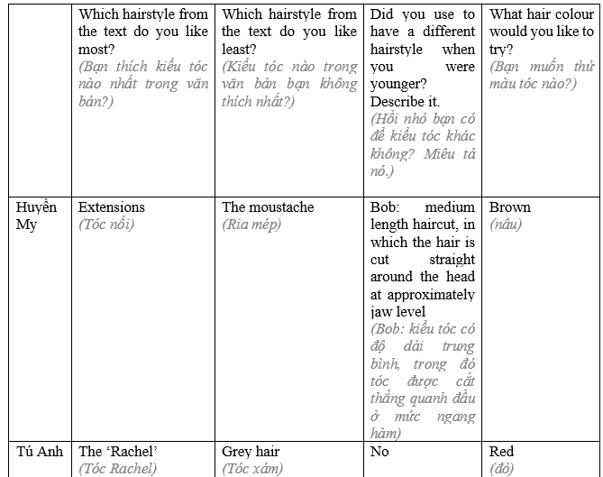 (Bạn thích kiểu tóc nào nhất trong văn bản?)