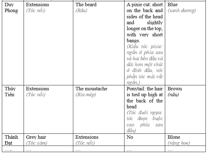 (Kiểu tóc phổ biến nhất/ít phổ biến nhất trong lớp là…)