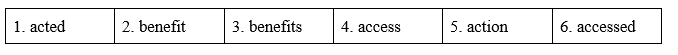 (Hoàn thành các câu với dạng đúng của động từ hoặc danh từ action, access hoặc benefit.)