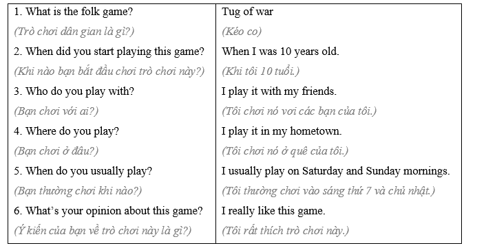 (Bây giờ hãy sử dụng ghi chú của bạn để viết một đoạn văn miêu tả về một trò chơi dân gian mà bạn thích chơi. Viết 80 đến 100 từ.)