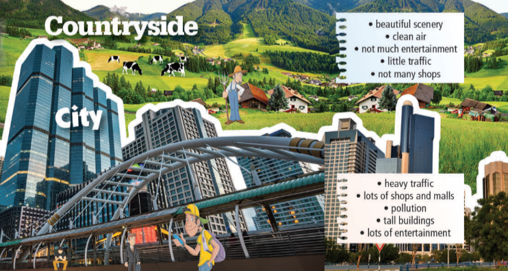 3. Do you like living in the city or in the countryside? Why? Tell your partner.