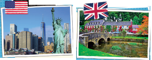 The places in the pictures are New York, New York State, USA and Bibury, Gloucestershire, England.