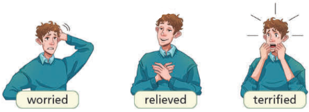 4. Katie was worried/relieved about getting in a plane crash when she flew the first time.