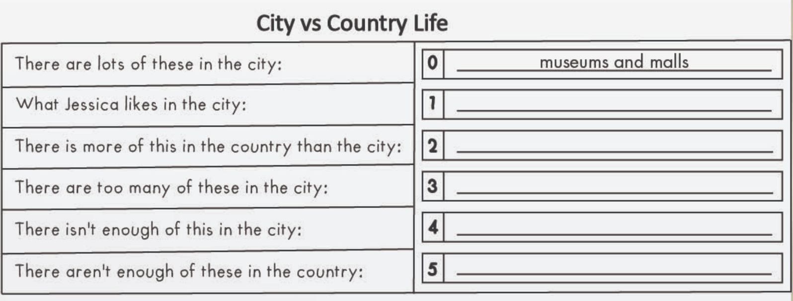 You will hear two students talking about country and city life. Listen and fill in the blanks. You will hear the information twice. Look and read. Choose the correct answer (A, B or C). Circle the correct answers Underline the mistakes and write the correct words on the lines.