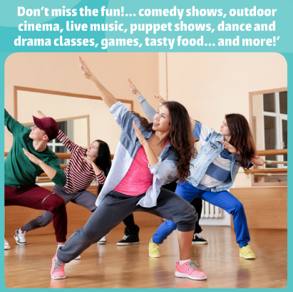 Don’t miss the fun! … comedy shows, outdoor cinema, live music, puppet shows, dance and drama classes, games, tasty food… and more!