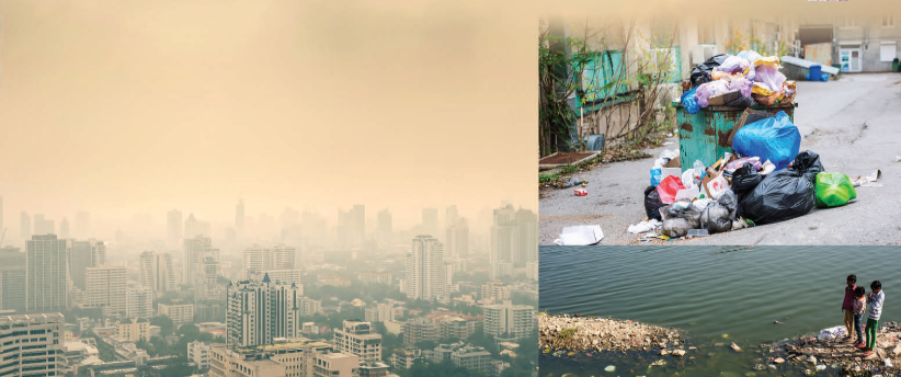 In the pictures, I see some environmental problems such as air pollution, garbage thrown in many places, water pollution. In my opinion, people can throw their garbage in the right place to improve the environment.