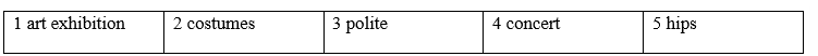 Eat traditional foods, listen to live music, take part in 5) ____________